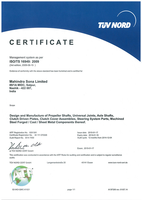 WE, AT MAHINDRA SONA LIMITED, ARE COMMITTED TO SATISFY OUR CUSTOMERS BY DESIGNING,
